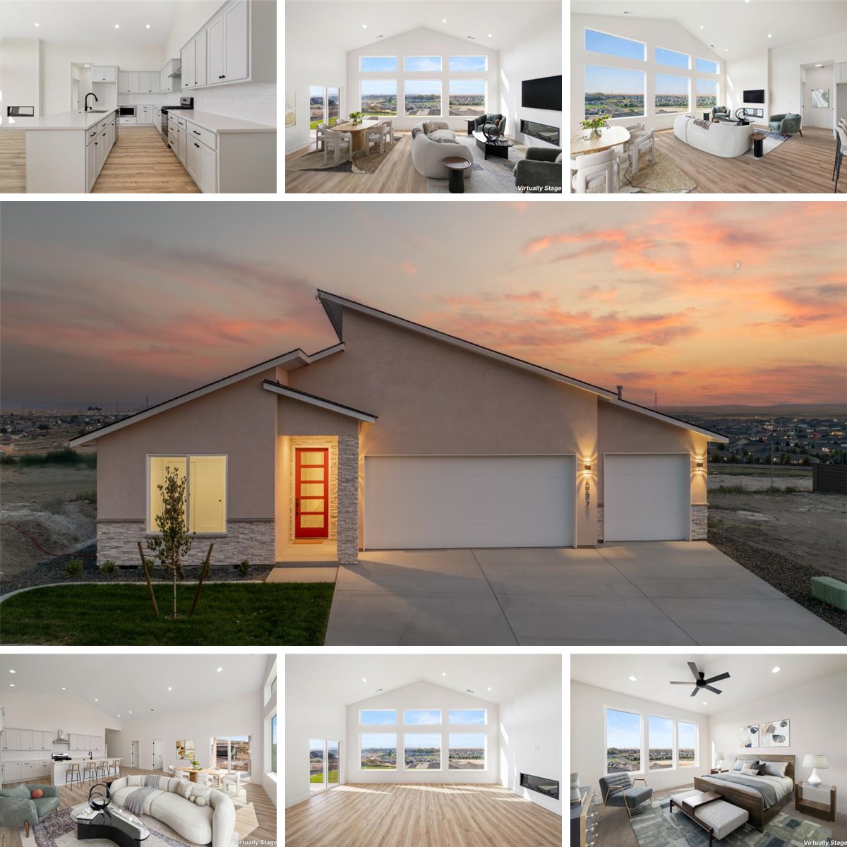 Limited Time Offer! Up to $10,000 credit towards closing costs when you finance with our trusted lender! Don't miss this limited-time opportunity. Experience elevated living in this stunning 4-bedroom floor plan, where breathtaking views, soaring vaulted ceilings, and walls of windows create a bright, open, and airy atmosphere you’ll love coming home to. Thoughtfully designed with luxurious high-end finishes throughout, this home offers the perfect blend of modern elegance and comfort. The open-concept living area features sleek flooring, custom lighting, and expansive windows that flood the space with natural light while showcasing the beautiful surroundings. At the heart of the home is the gourmet kitchen, complete with stainless steel appliances, quartz countertops, a generous island, and custom cabinetry—ideal for both daily living and entertaining. Retreat to the primary suite, your private oasis, featuring a spa-like en-suite bathroom with a soaking tub, dual vanities, tiled walk-in shower, and a spacious walk-in closet. Three additional bedrooms provide flexibility for family, guests, or a home office setup. Enjoy low-maintenance outdoor living with professionally landscaped front and back yard, and a private patio with sweeping views—perfect for relaxing sunsets or weekend gatherings. Ideally located near top-rated schools, shopping, dining, and medical facilities, this home offers unmatched style, space, and convenience. Photos are of a previously built and virtually staged home. Come see why BrickWise Homes at Valley View is the perfect place to call home!